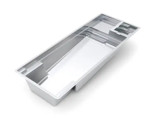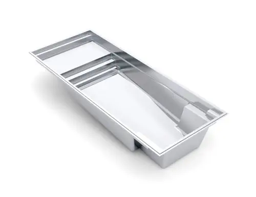 The Linear with Cover offers a unique high waterline feature with a 1.5 m flat bottom and a width of 3.3 m making it ideal for smaller backyards. The auto cover area is placed at the front of the pool. This is a showcase pool design that can also be complimented with inground pool lights to accent its classic rectangle shape.
