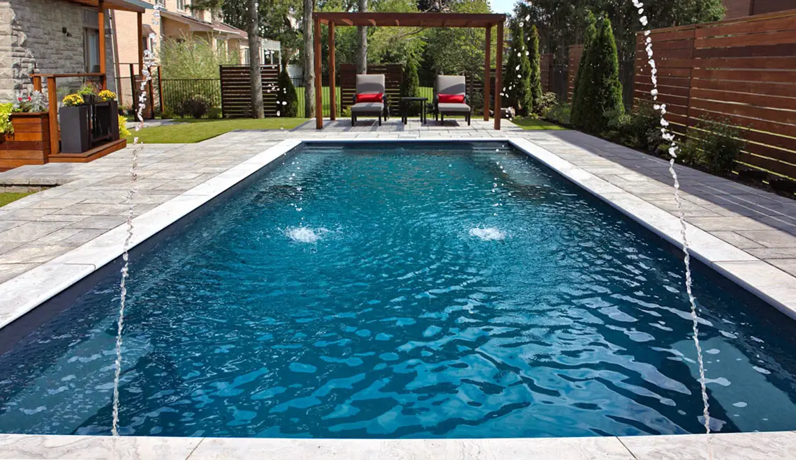 More than just a space for fun and games, this sleek, rectangular pool pulls out all the functionality stops in legendary style. It may very well just become the highlight of your outdoor living space.